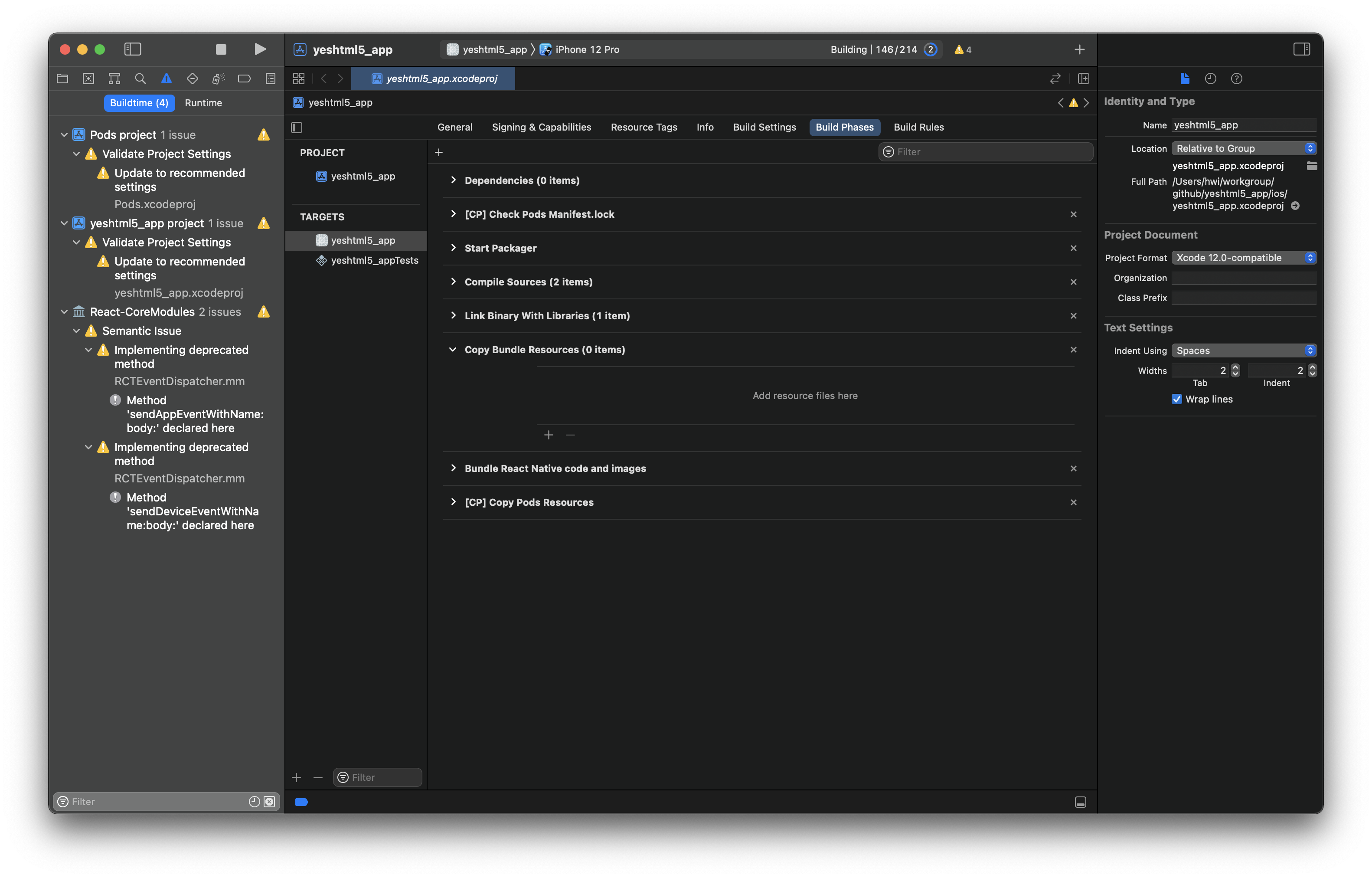 xcode Build Phases 이하 copy bundle resources 이하 소스파일삭제