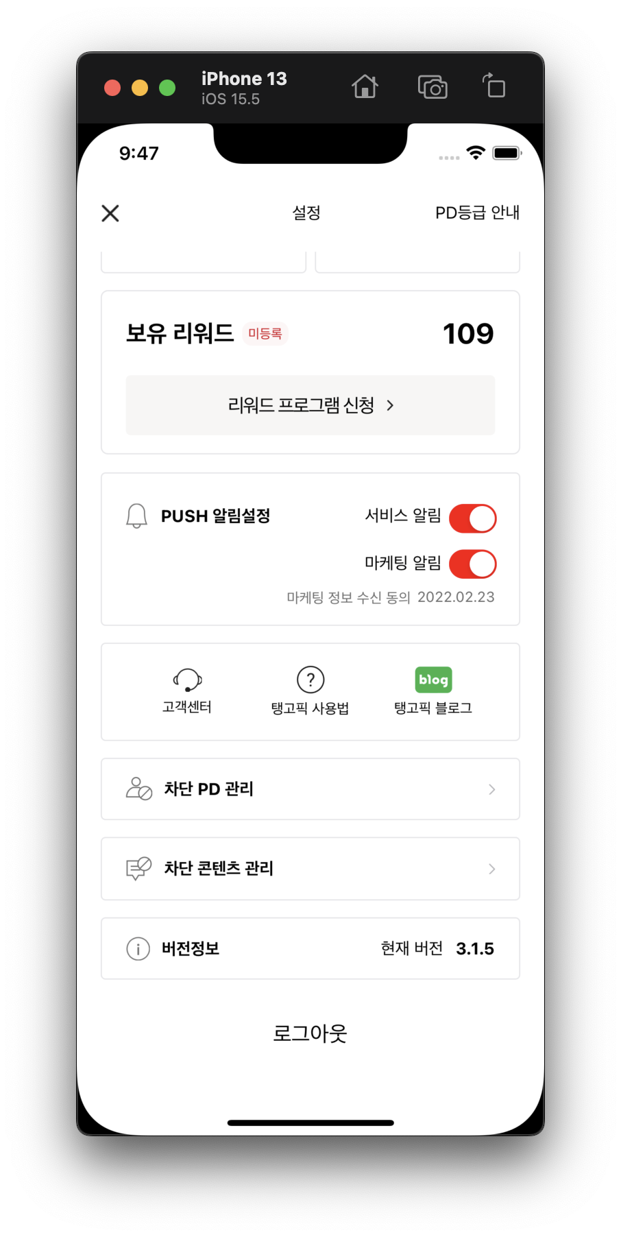 현재 운영중인 서비스에 버젼정보에 v3.1.x 형태를 "설정" 쪽에 보여준다.