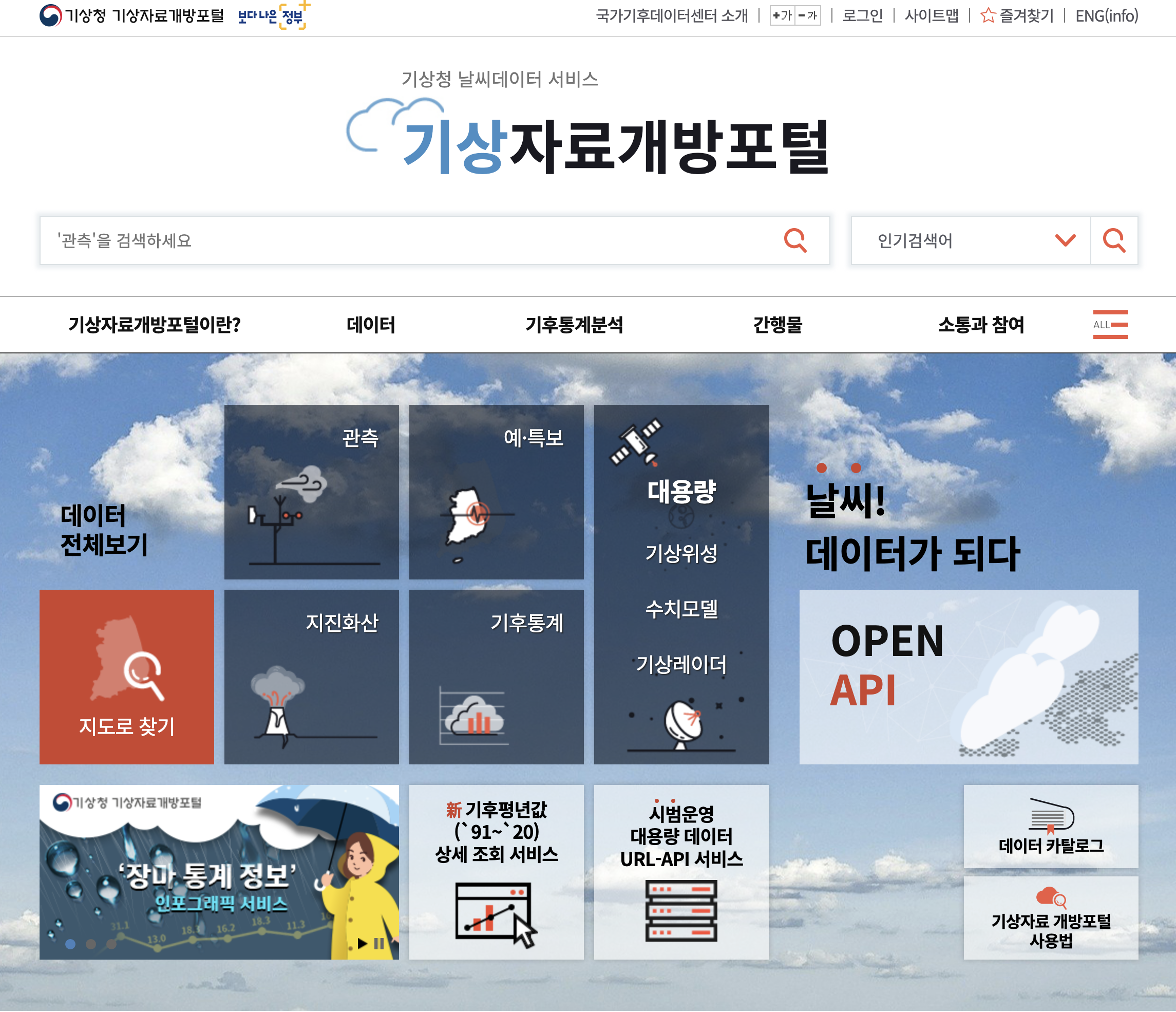 기상정보, 지진,화산등 API 가져올수있는곳 본문