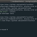 git clone을 하던중에 갑자기 에러가 안나와서 고민하다, google통해서 찾아봤다. 에러메시지는 "xcrun: error: invalid active developer path (/Library/Developer/CommandLineTools), missing xcrun at: /Library/Developer/CommandLineTools/usr/bin/xcrun" 잘쓰다가, 모하비OS로 (다크테마를 쓰고싶었다.) 다시 clone을 하다보니, 아래와같은 형태가 되었다. 도움이 되었던, 사이트는 다음과 같다. https://apple.stackexchange.com/questions/254380/macos-mojave-invalid-active-developer-path OSX Mojave 이후에..